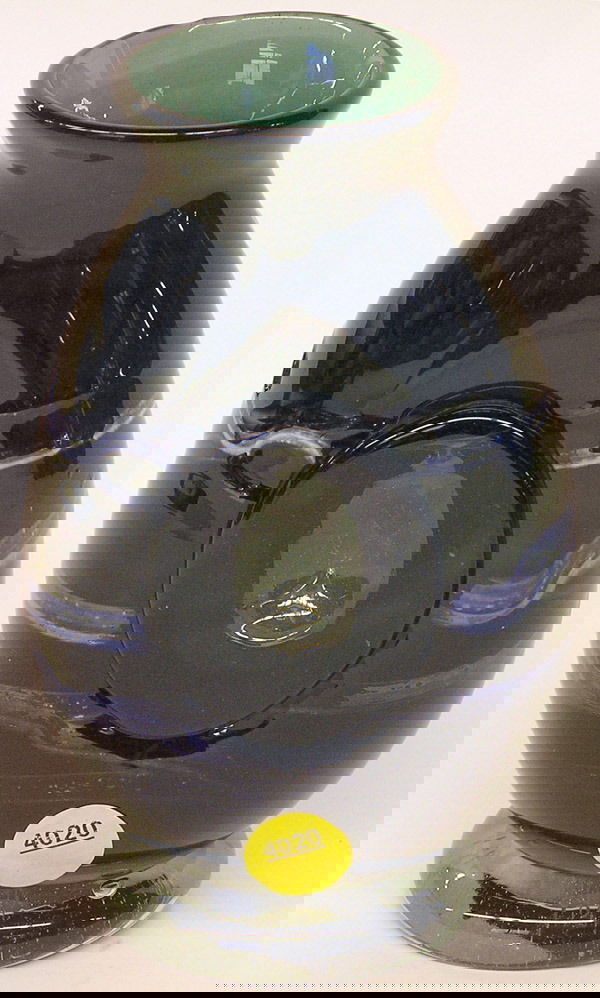 Vintage Signed Blue Art Glass Vase