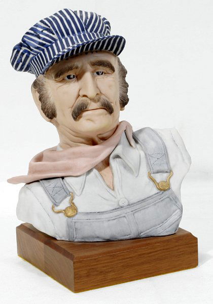 EDWARD J. ROHN BISQUE BUST, 'TRAIN CONDUCTOR'