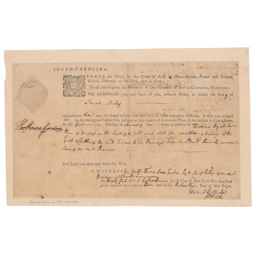 1800 Fine New York Bail DocumentWilliam Thornton 1817 Washington DC Capital Architect Signed Manuscript Document Richard Bland LeeMar 29, 2026LINCOLN, Abraham (1809-1865). Autograph legal document signed twice ("A. Lincoln" and "AbrahamMar 26, 2026[Paulding, Hiram] Rodgers, John. Letter, signedARCHITECTURE - ROBERT ADAM Autograph letter signed ('Robt Adam') Adelphi, 15 August 17721800 Signed Order, Samuel Jones Jr., New York, Early Republic Judicial DocumentMar 15, 20261773 Colonial Court Indictment The King vs. McGile, Signed by Attorney General Andrew AllenMar 15, 2026Choctaw Nation Land Record Document, Signed by Orlando Brown, 18503 hrs LeftLINCOLN, Abraham (1809-1865). Autograph legal document signed ("Davis, Lincoln, Lamon"),Mar 26, 20261794 Connecticut Recorded Land DeedMar 15, 2026LINCOLN, Abraham (1809-1865). Autograph legal document, signed ("Logan & Lincoln"). Sangamon County,Mar 26, 2026REPUBLIC OF TEXAS LAND DEEDMar 27, 2026LINCOLN, Abraham (1809-1865). Manuscript document signed ("A. Lincoln"), [Springfield], 18 JuneMar 26, 2026UNION GENERALS EDWARD N. KIRK AND ALEXANDER M. MCCOOKMar 27, 2026LINCOLN, Abraham (1809-1865). Manuscript document signed twice ("A. Lincoln"), [Springfield], 5Mar 26, 2026DOUGLAS, Stephen Arnold (1813-1861). A group of 14 documents and letters relating to Douglas's legalMar 26, 2026