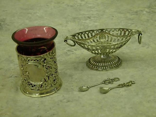 A composed lot of four religious silver and silver-plated brass church objectsFeb 24, 2026Sterling 925, 800 French Silver & Silverplate LOTFeb 26, 2026VINTAGE STERLING SILVER TABLEWARE COLLECTIONFeb 21, 2026Antique sterling silver holloware and flatware, 11pc: Saart Brothers weighted sterling tea / coffeeFeb 21, 2026THREE ASSORTED ENGLISH SILVER ITEMS Creamer, H: 5 5/8 in. Weighable silver, 6.2 troy oz.5 days LeftLondon, 1847 by William Robert Smily A Victorian sterling silver sugar basketFeb 18, 2026A silver cream jug and sugar basket with finely engraved continuous frieze of floral and geometricFeb 15, 2026Collection of Sterling Silver Holloware, 76 hrs LeftTwo Pieces of English Sterling FlatwareFeb 15, 2026A Group of Sterling Silver Table ArticlesFeb 15, 20267 Sterling Silver Table ArticlesFeb 26, 2026Sterling silver hollowware and flatware, 13pc, 15.595 ozt. weighable. 7"H x 2 1/4"Diam. (vaseFeb 21, 2026Good Group of Sterling Vessels5 days LeftINDIAN SILVER FLARING CUP AND CIRCULAR BOWL, Cup, H: 3 1/8 in. Wt. 4 troy oz.5 days LeftThree Silver-Plated Utensils from Holmes & Edwards, Rogers & Hamilton, and R. WallaceEnglish Cut Crystal Vase with Silver Mounts and Pearl Accents, with Mother-of-Pearl Handled Fork &6 days Left