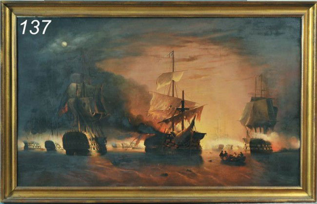 John Bentham Dinsdale Large Original Oil Painting Nautical Ship Seascape Signed Art5 days LeftOil painting Ships at sea Alexander Arkadievich LitvinovBRITISH ROYAL NAVY SQUADRON OIL PAINTINGFeb 15, 2026SHIPS AT SUNSET OIL PAINTINGFeb 15, 2026Naval Engagement at Dusk Oil On Canvas by William CanFeb 21, 2026CIRCLE OF GEORGE WEBSTER (BRITISH 1797-1864), SHIPS FOUNDERING IN A ROUGHT SEA3 days LeftENGLISH SCHOOL (19th Century,), Ships in rolling seas., Oil on canvas, 24" x 36". Framed 31" xFeb 26, 2026Richard Dey De Ribcowsky (Bulgarian/American, 1880-1936), Moonlit Seascape with Sailing Ships368 Lots AwayNaval Engagement at Dusk Oil On CanvasFeb 21, 2026JAMES GALE TYLER (Connecticut/New York, 1855-1931), Sailboat under moonlight., Oil on canvas, 28" xFeb 26, 2026British Battleship at Sea, Oil on Canvas20 hrs LeftMaritime Painting of a 17th Century Naval Battle, Oil on Canvas19 hrs LeftAntique painting of 2 large sailing ships on the sea. Well done oil on canvas put onto artist board.Feb 01, 2026THOMAS BUTTERSWORTH (United Kingdom, 1768-1842), "An English Frigate Off Ramsgate"., Oil on canvas,Feb 26, 2026THOMAS WHITCOMBE (BRITISH 1752-1824), THE BATTLE OF THE SAINTES 9-12 APRIL17823 days Left17th Century Dutch School - Maritime Sea Battle, Oil on Wooden PlanksFeb 17, 2026