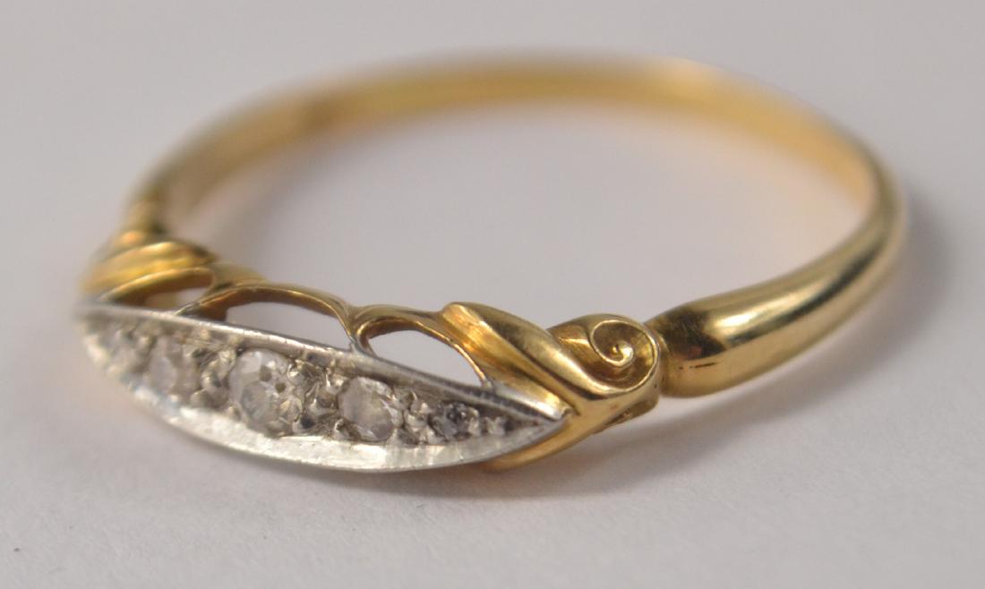Edwardian 18ct 5 diamond set ring with scrolling design