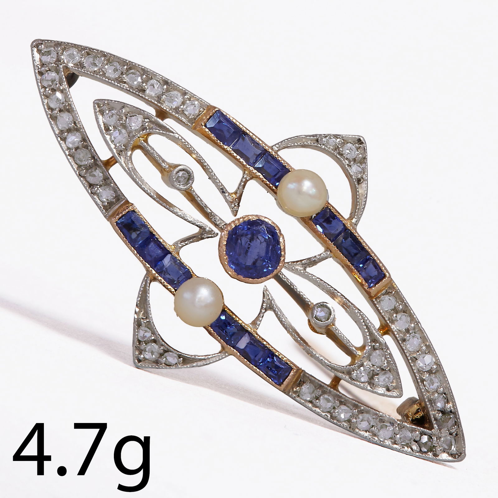 EDWARDIAN DIAMOND, SAPPHIRE, PEARL AND RUBY BROOCH