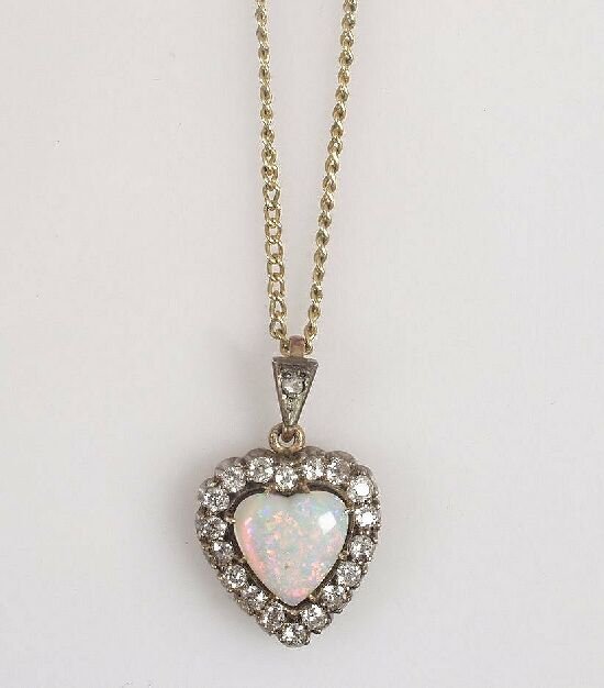 Edwardian heart shape opal and diamond