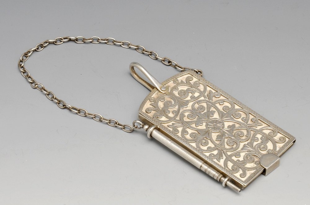 Arthur Joseph Mason Edwardian Silver Calling Card Purse 1908, H 2" W 3"Feb 20, 2026Victorian Sterling Silver Miniature Notebook And Pencil2 days LeftSilver-Coloured Metal Pendant with Rock Crystal Calligraphic GemMar 07, 2026Sterling Silver Southwestern Tobacco Bottle/ Snuff BottleAn Edwardian nine carat gold combined locket stamp case Albert Jenkins, Birmingham 1908Vintage English Sterling Silver Watch Fob MedalFeb 12, 2026A VICTORIAN SILVER CASED TRAVELLING TIMEPIECEFeb 17, 2026BARBARA BIXBY SILVER KEY PENDANT WITH 18K GOLD ACCENTS AND 0.04CTS OF DIAMONDS5 days LeftAntique English Sterling Silver Watch Fob MedalFeb 12, 2026Gorham Art Nouveau Sterling Silver Cigar Card Box 1900s4 days LeftLouis Vuitton Nanogram Necklace Women's GP Metal M63141 Name Tag Motif A2214677 days LeftJEWISH SILVER TORAH SHIELD w. CHAIN, 18684 days LeftS-158906 LOEWE Anagram Personalization Necklace Metal Palladium (Silver)Feb 11, 2026Antique 14 Inch White Gold Bar Link Pocket Watch Chain with Clip5 days LeftAntique English Sterling Silver Watch Fob MedalFeb 12, 2026A VICTORIAN SILVER MOUNTED PILGRIM FLASKFeb 17, 2026