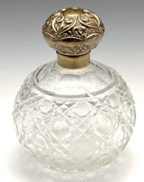Edwardian silver mounted perfume bottle.