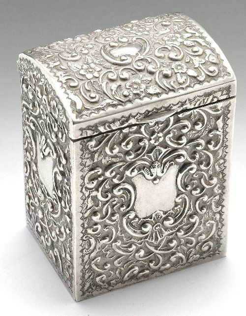 A VICTORIAN SILVER SHAPED RECTANGULAR SNUFF BOXFeb 17, 2026William IV sterling silver card caseFeb 20, 2026Antique Gorham Sterling Silver Jewelry Box Circa 1900 Victorian Elegance5 hrs LeftAntique Sterling Silver Cigarette Box, Birmingham, Early 1900sFeb 19, 2026Large Antique Chinese Silver & Gilt Covered Box with Insert, Qing DynastyFeb 17, 2026A Vintage Godinger Silverplate Floral Jewelry Box with Velvet Interior2 days LeftTiffany & Co. Silver-Soldered Stamp Box and Cover.6 days LeftGorham Art Nouveau Sterling Silver Cigar Card Box 1900s4 days LeftAn Antique Sterling Silver Jewelry BoxFeb 12, 2026A Vintage Silver-Tone Footed Floral Trinket BoxFeb 15, 2026A LATE 19TH CENTURY JAPANESE MEIJI PERIOD SILVER BOX AND COVER engraved with flowers. 70 grams. 8.5Feb 10, 20261917 Deakin & Francis English Sterling Silver Cigarette CaseFeb 10, 20261900s SK Sterling Silver Tea Caddy Hallmarked Design3 days LeftWilliam Nolan 1877 Sterling Silver Crystal Box with Etched Lid1 day LeftVintage Persian 875 or 900 Silver Round Box2 days LeftRussian Silver Filigree BoxFeb 25, 2026