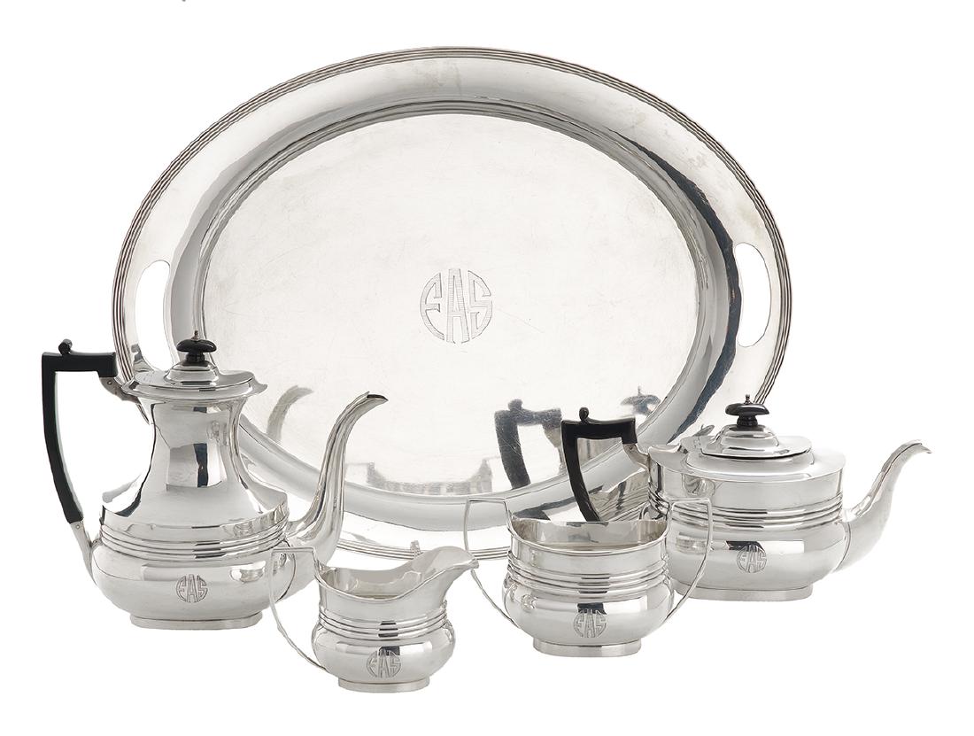 AN AMERICAN SILVER SEVEN-PIECE TEA AND COFFEE SERVICE AND TRAY MARK OF TIFFANY & CO., NEW YORK,Feb 19, 202615pcs - Silverplate Serving Tray & Assorted Tea Service7 days LeftAN AMERICAN SILVER NINE-PIECE TEA AND COFFEE SERVICE AND TRAY MARK OF GORHAM MFG. CO., PROVIDENCE,Feb 19, 2026Crown Silverplate Tea Set, Sterling Arthur Bond Yokomana Cup6 days LeftWallace “Baroque" Silver-Plated Tea Set With Tray, 5 PiecesFeb 15, 2026American Sterling Silver Tea and Coffee Service with Tray, Presented to Gertrude Vanderbilt WhitneyFeb 11, 2026Georg Jensen Sterling Silver Art Deco 7 Pieces Tea Set , Tray 22" x 13" Total W: 165 ozFeb 14, 2026ENGLISH BACHELOR SILVER TEA SET, 805g12 hrs LeftLarge, Heavy Late 19th C. Tiffany & Co. Sterling Silver (8,260g) Six-Pieces Tea Set4 days Left1970s Reed & Barton Winthrop Silver Plate Tea Set With Tray- 4 PiecesFive Piece Silverplated Tea ServiceFeb 16, 2026ENGLISH SILVER TEA & COFFEE SET, 1499g12 hrs LeftSterling Silver Tea SetFeb 13, 2026Reed & Barton Sterling Four-Piece Tea & Coffee Service w/a Tiffany Silver Plated Tray.6 days LeftFive Piece Silverplated Tea Service, "Lancaster Rose" by PooleFeb 16, 2026Gorham Silverplate Tea and Coffee Service in Medallion PatternFeb 12, 2026
