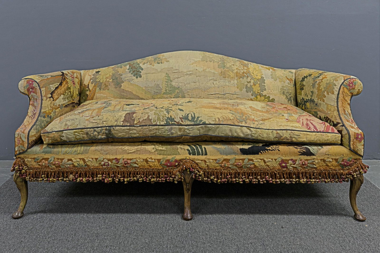 Antique French Louis XVI style carved walnut settee or sofa and featuring ornate decorative tapestryBasel Auction House4.5(55)$150Mar 28, 2026