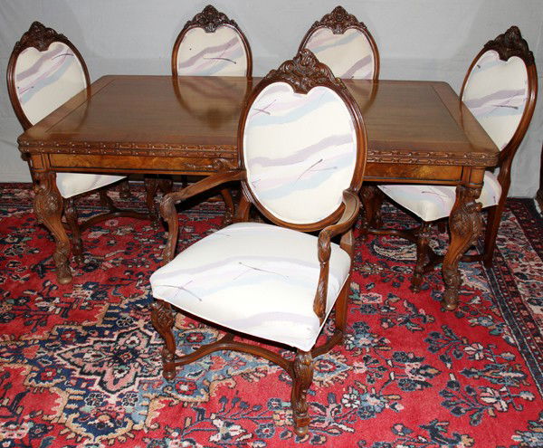 EDWARDIAN WALNUT & BURL WALNUT DINING SET,