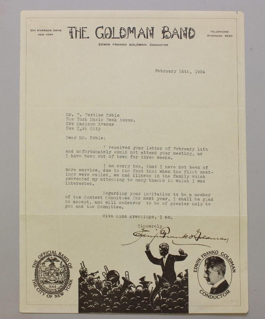 SoldGrouping letters from the Big Band era includingGrouping letters from the Big Band era including several letters signed by Edwin Franko Goldman (Conductor) and by Paul Lavalle. All good condition.See Sold Price