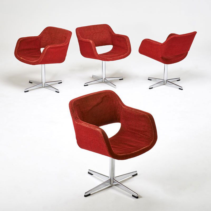 (4) EERO SAARINEN (D.1961) FOR KNOLL UPHOLSTERED EXECUTIVE SIDE CHAIRS5 days LeftBruno Mathsson (Swedish, 1907–1988) Pair of Jetsons Chairs for Dux, designed 1969Feb 26, 2026Saarinen Style Tulip Swivel Chairs - 4Feb 26, 2026Arne Jacobsen Side Chairs, Set of 46 days LeftPAIR HARVEY PROBBER CANTILEVERED LOUNGE ARMCHAIRS4 days Left6 ITALIAN STYLE LEATHER MODERN CHAIRSFeb 23, 2026Milo Baughman Scoop Lounge Chairs with Chrome Bases 1970s16 hrs Left4 Danish Kaare Klint Style Caned Arm Chairs18 hrs Left4 Mid Century Dining Chairs - Elliots of Newbury #118 hrs Left4 Mid Century Modern High Back Chairs - Gplan18 hrs LeftIlmari Tapiovaara 'Hongisto' Chairs - 4Feb 26, 2026Chrome Upholstered Swivel Bar Stools- 4Feb 26, 2026Set of 4 Postmodern K2 Magenta Chairs by Busk & Hertzog for Hightower USA 2000s16 hrs LeftMid-Century Modern Style Dining Chairs, 4Apr 14, 2026PAIR OF FIBERGLASS LOUNGE CHAIRS RESTING ON IRON LEGS IN THE STYLE OF DONALD KNORR C 1950.Feb 26, 20264 Mid Century Dining Chairs - Elliots of Newbury #218 hrs Left