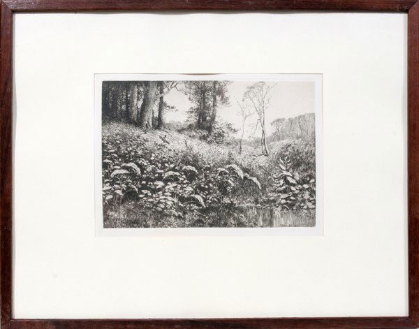 E.F. MILLER, ETCHING, '82, FIELD WITH TREES IN
