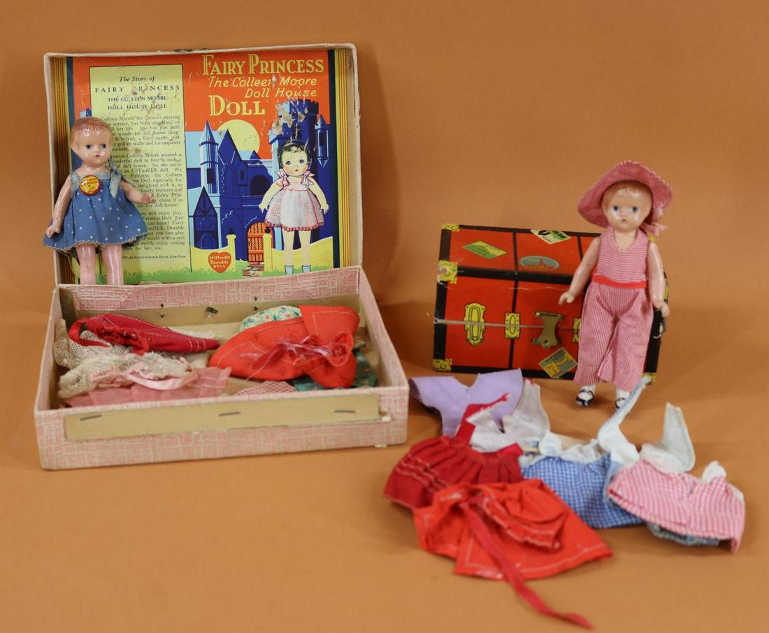 SoldCOMPOSITION & COMPOSITE DOLL(S).Pair of dolls. Composition - 14" EFFANBEE "Patricia" doll of the Patsy Family. Back of the head is marked "Patsy", back of the torso is marked "Patricia". Dressed in replaced 2 pc. outfit; oilcloth shSee Sold Price