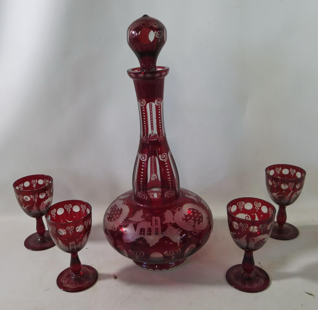 Egermann Bohemian Ruby Red Cut To Clear Glass Decanter and Wine GobletsCrafted Auctions by Just Art Pottery4.5(47)$25(3 bids)7 hrs Left