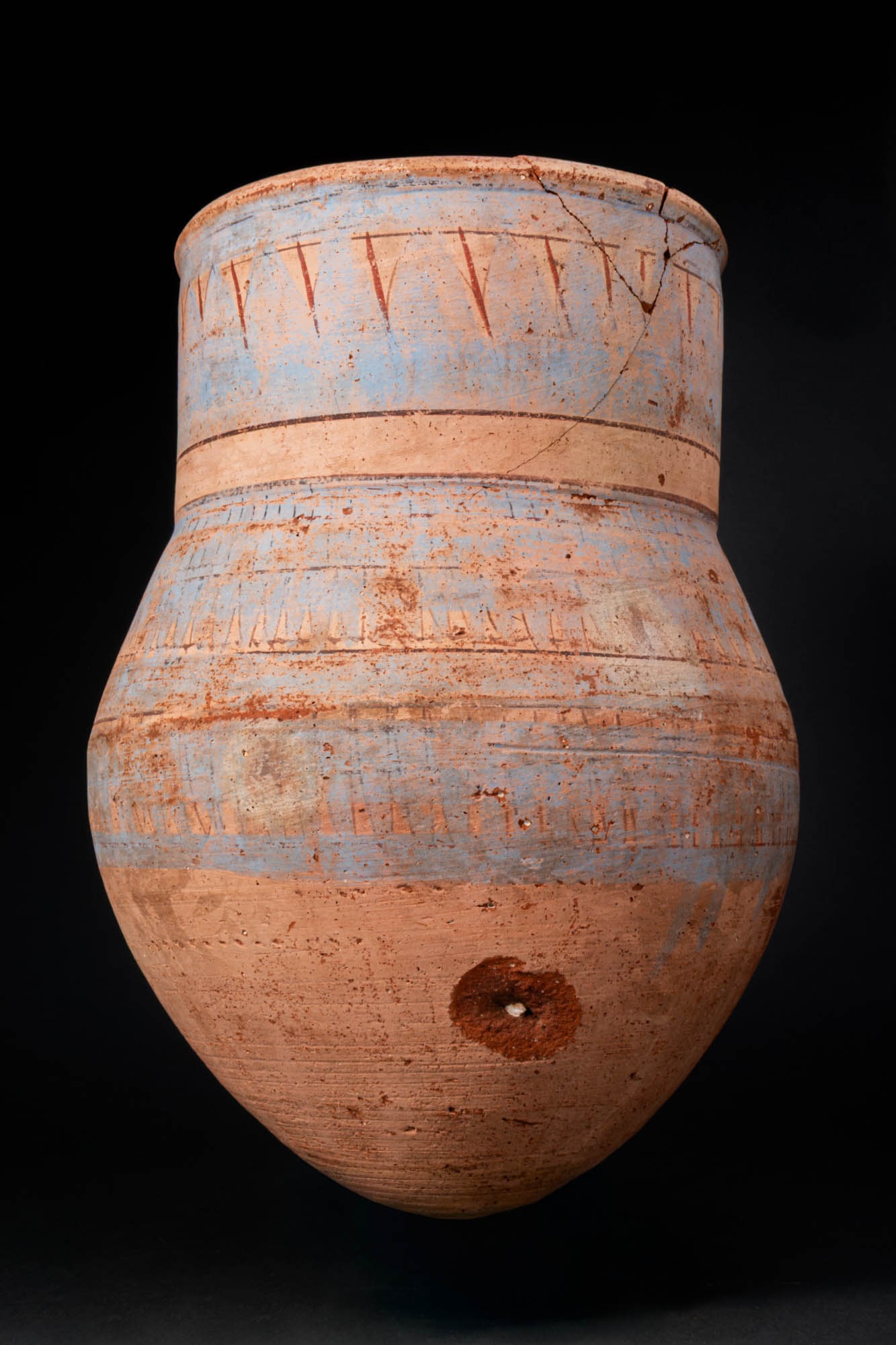 EGYPTIAN BLUE-PAINTED TERRACOTTA JAR WITH LOTUS PETALS