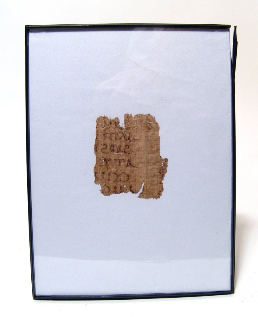 Egyptian framed papyrus fragment with Coptic script