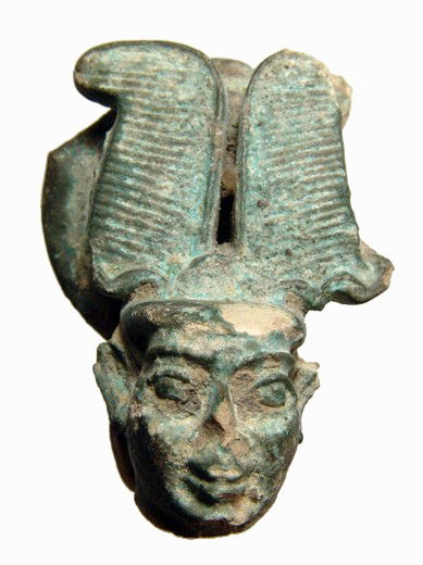 Egyptian plumed head from large faience figure
