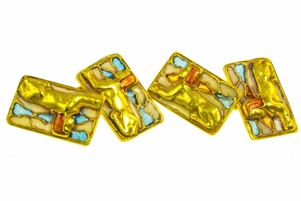 David Webb 18K Gold Ram Head Cuff Links and Stud Set with Blue Enamel and EmeraldsDiamond Depot4.3(10)$9,5009 hrs Left