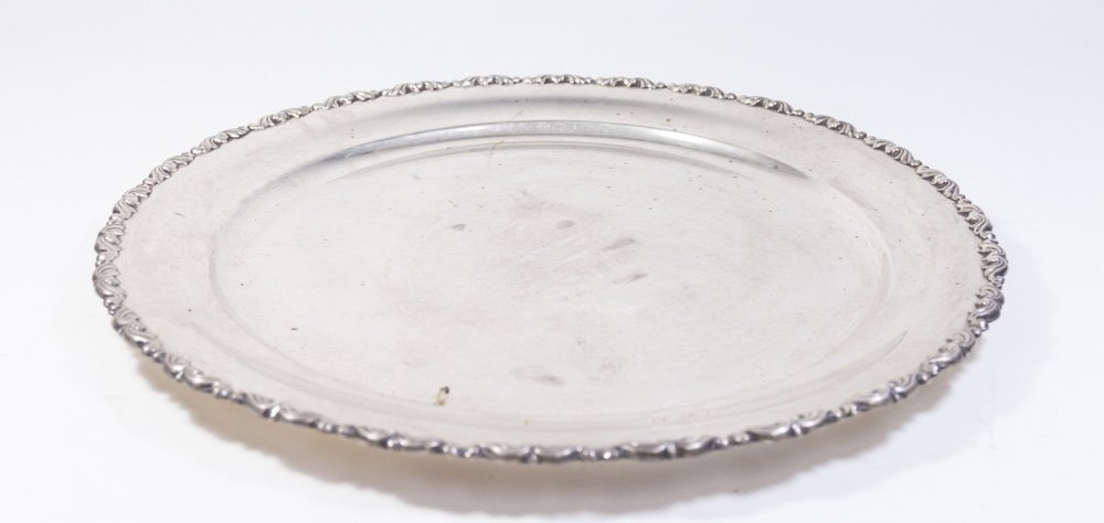 SoldBaroque style Portuguese silver round traymid 20th century, 833 standard, no monogram, 18 1/2 in. Diam., 56.30 ozt.See Sold Price