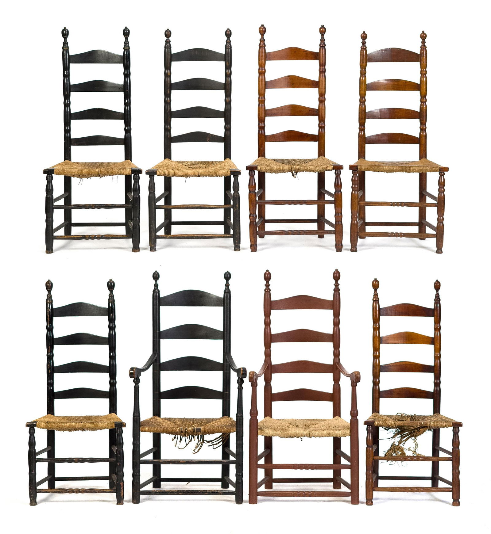 Sold18TH C. LADDER BACK CHAIRRUSH SEAT. BULBOUS TURNING. TURNED FINIALS. 41 1/2" X 18 1/4" X 14 1/4". PLEASE READ CAREFULLY - Terms for Purchasing and Shipping of Auction Items. Please read carefully before bidding. Hartzell?s AuSee Sold Price
