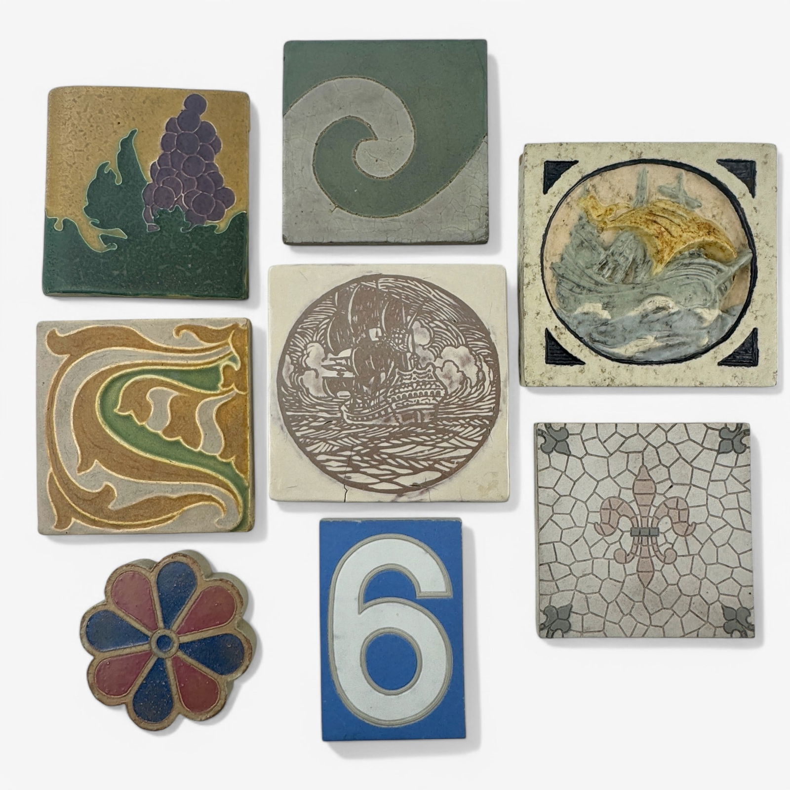 Eight Art Pottery Tiles, Various Makers