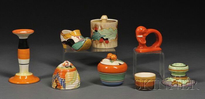 Eight Assorted Clarice Cliff Pottery Items Art Dec