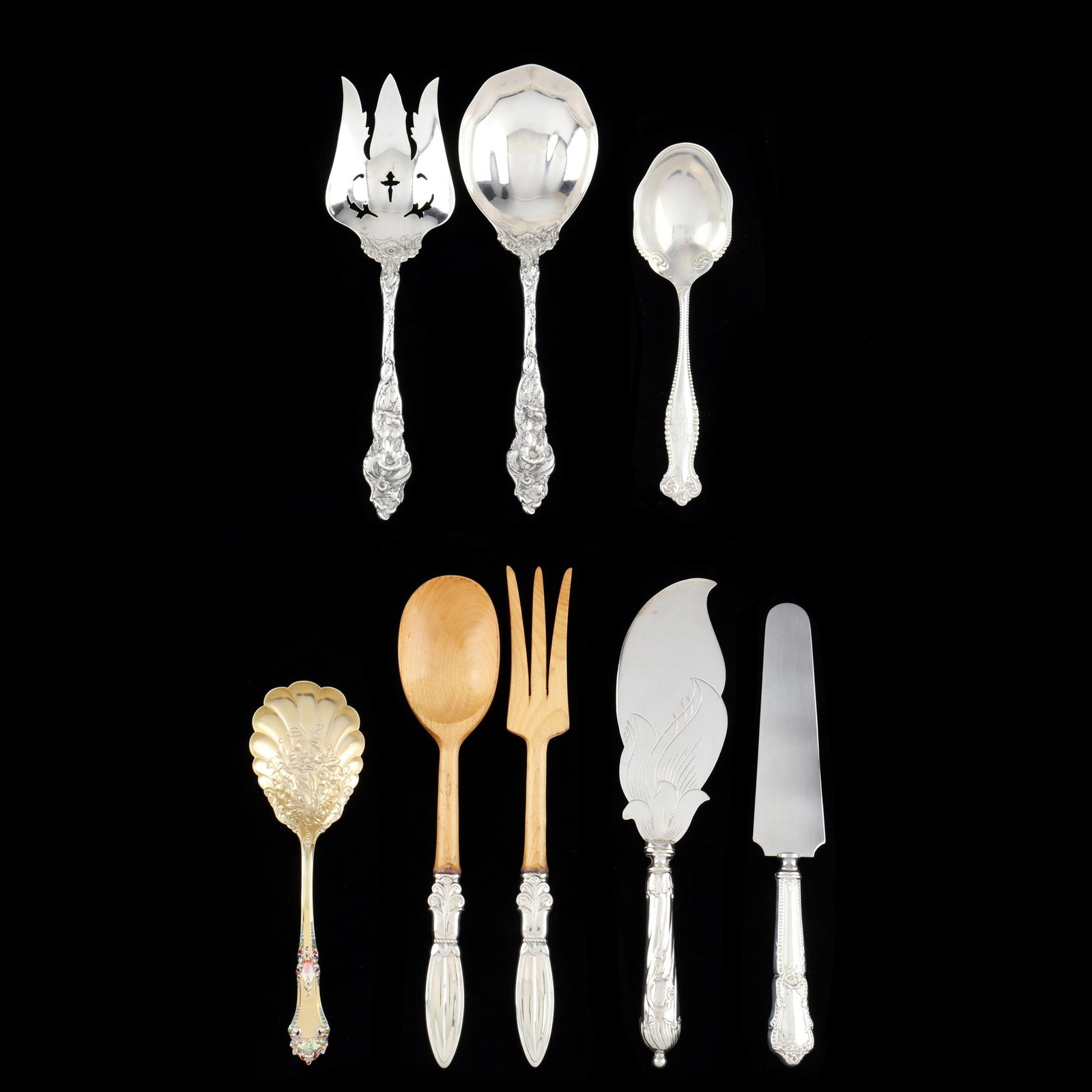 Eight Assorted Silver Flatware Servers