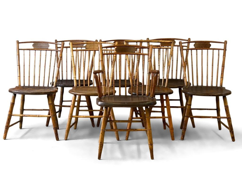 Eight Bamboo Turned Windsor Dining Chairs