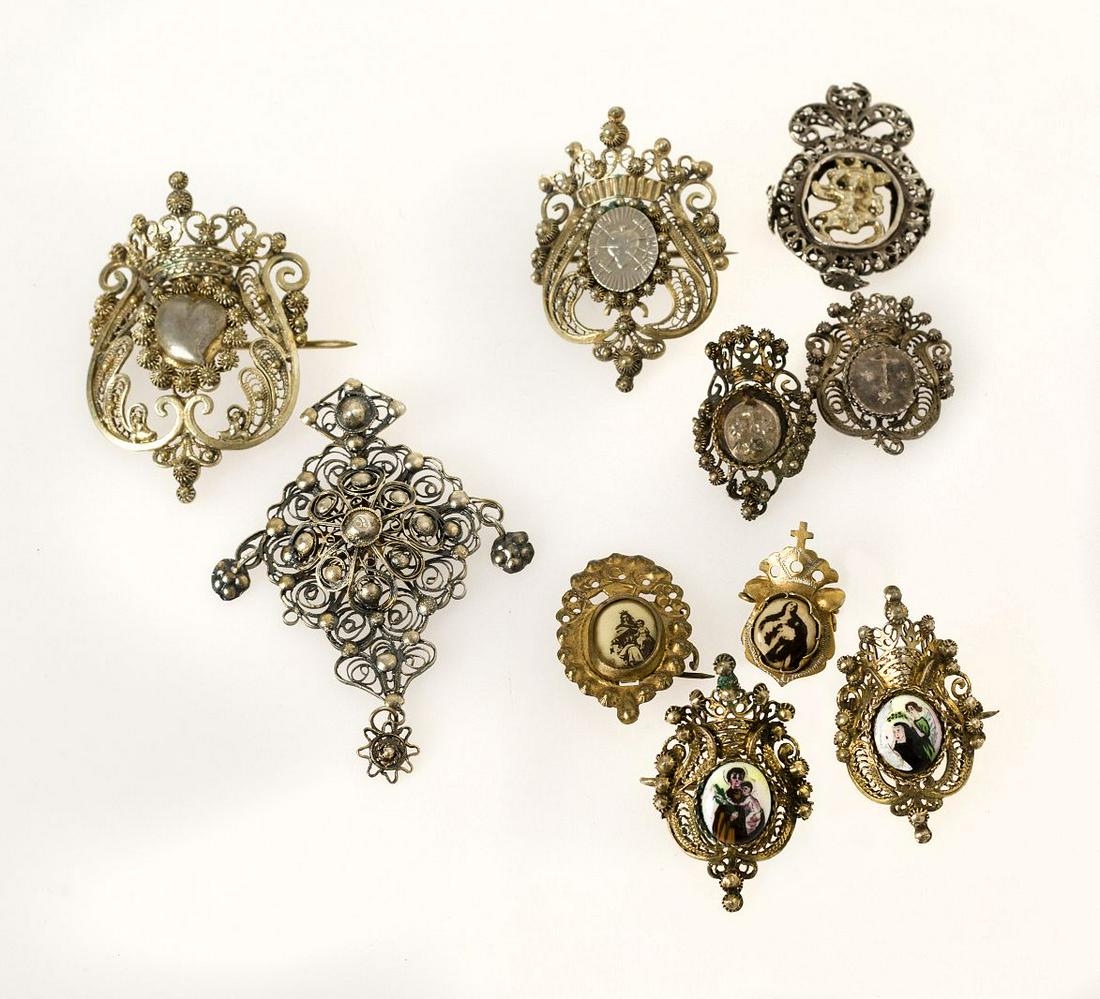 EIGHT BROOCHES AND TWO MEDALS