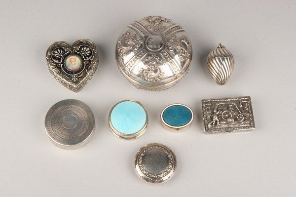 EIGHT CONTINENTAL SILVER AND SILVER PLATED BOXES.