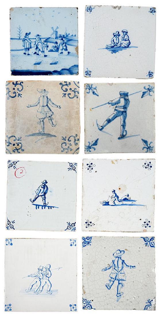 Eight Dutch Delft Skating Tiles