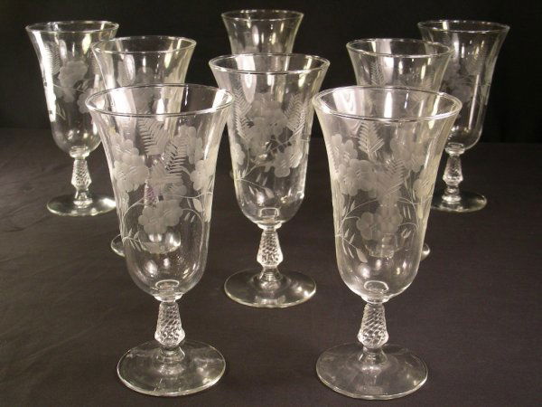 EIGHT ETCHED & CUT GLASS STEM GOBLETS