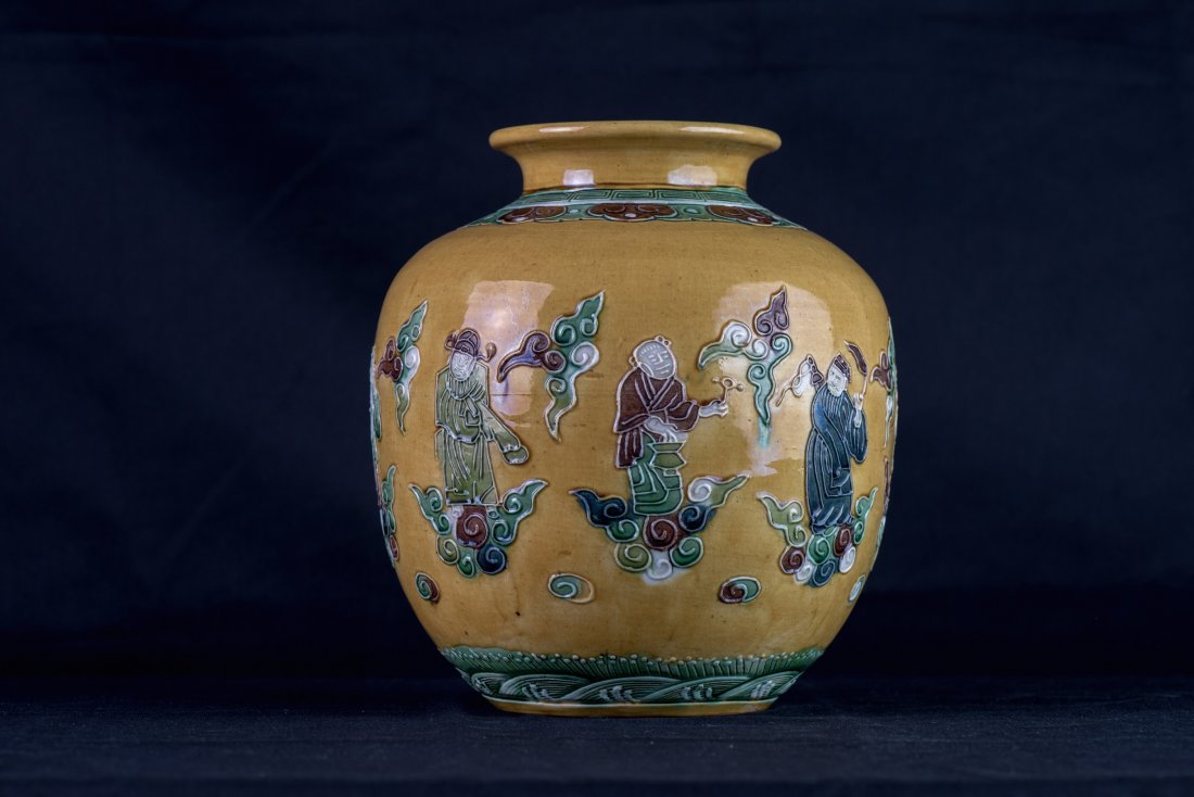 A BROWN GLAZED MARTABAN STONEWARE STORAGE JAR, QING DYNASTYMar 11, 2026A large lid jar of the Eight Immortals Picture made in the Zhengde era of the Ming DynastyMar 14, 2026Ming Jiajing Sancai Glazed Large Jar with Openwork Dragon PanelsFeb 28, 2026Yuan Dynasty style, five-color, Zhaojun Goes Beyond the Frontier, figure story jarFeb 24, 2026A Rare Paste relief Painted Gold Seawater,Auspicious Cloud and Phoenix Pattern Beast-Ears JarMar 18, 2026A beautiful copper-inlaid porcelain eel yellow glaze open piece sheep's head ear appreciation bottleFeb 27, 2026Yuan Dynasty Gold-Painted Mandarin Ducks and Lotus Pattern Jar16 hrs LeftA Qing Qianlong pastel gold-painted Eight Immortals amphoraFeb 28, 2026Doucai Vase with Eight Immortals and Fushou MotifMar 03, 2026A Qing Qianlong yellow ground doucai lotus eight treasure amphoraMar 14, 2026A Chinese Green-Ground Porcelain Brush Pot with Phoenix Motif3 days LeftA polychrome ewer with four-sided windows and the Eight Immortals motif, made during the Jiajing17 hrs LeftA Qing Qianlong period hollow relief plus pastel seawater gilded cloud dragon pattern plum vaseMar 14, 2026A white-glazed porcelain jar with auspicious beast design from the Kangxi imperial kiln of the QingFeb 27, 2026A finely crafted plum vase with a continuous underglaze red scene of figures and stories, bearing5 days LeftYuan Dynasty Multicolor Hand-painted Wu Song Fighting the Tiger MeipingFeb 27, 2026