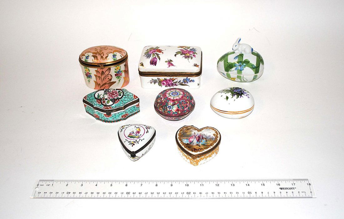Lot of 4 Trinket Boxes5 days LeftGroup Lot of Antique Asian Items5 days LeftOnyx, Porcelain & Enamel Trinket Boxes 4pc LOTFeb 26, 2026Lot 6 19th C Lithographed Tin Christmas BoxesMar 07, 2026Lot of Four French Enameled Table Boxes1 day LeftLot of China - Mason's Ironstone, Rathbone, More.7 hrs LeftLot: 8 Pcs.- Music Boxes, Marquetry Inlay Trays.7 hrs LeftLot of Seven Hand Painted Wood & Paper Mache BoxesFeb 16, 2026Estee Lauder Dunhill Ciner Limoges Compact MirrorFeb 26, 2026(12) CHINESE ROSE MEDALLION PARCEL-GILT PORCELAIN TABLE ARTICLESFeb 22, 2026(12) COLLECTION OF JEWELED & ENAMELED TRINKET / PILL BOXESFeb 20, 2026Limoges Painted Porcelain Trinket Boxes, 13Mar 12, 2026Continental Porcelain & Enamel Table Articles, 21Mar 12, 2026Porcelain & Other Decorated Vanity Boxes, 155 hrs LeftVintage Porcelain Trinket Boxes, Music Box, Trays1 day LeftGroup of 5 Chinese Cloisonne BoxesFeb 15, 2026