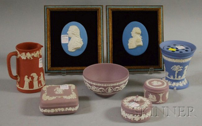Eight Modern Wedgwood Solid Jasper Items, a jug,