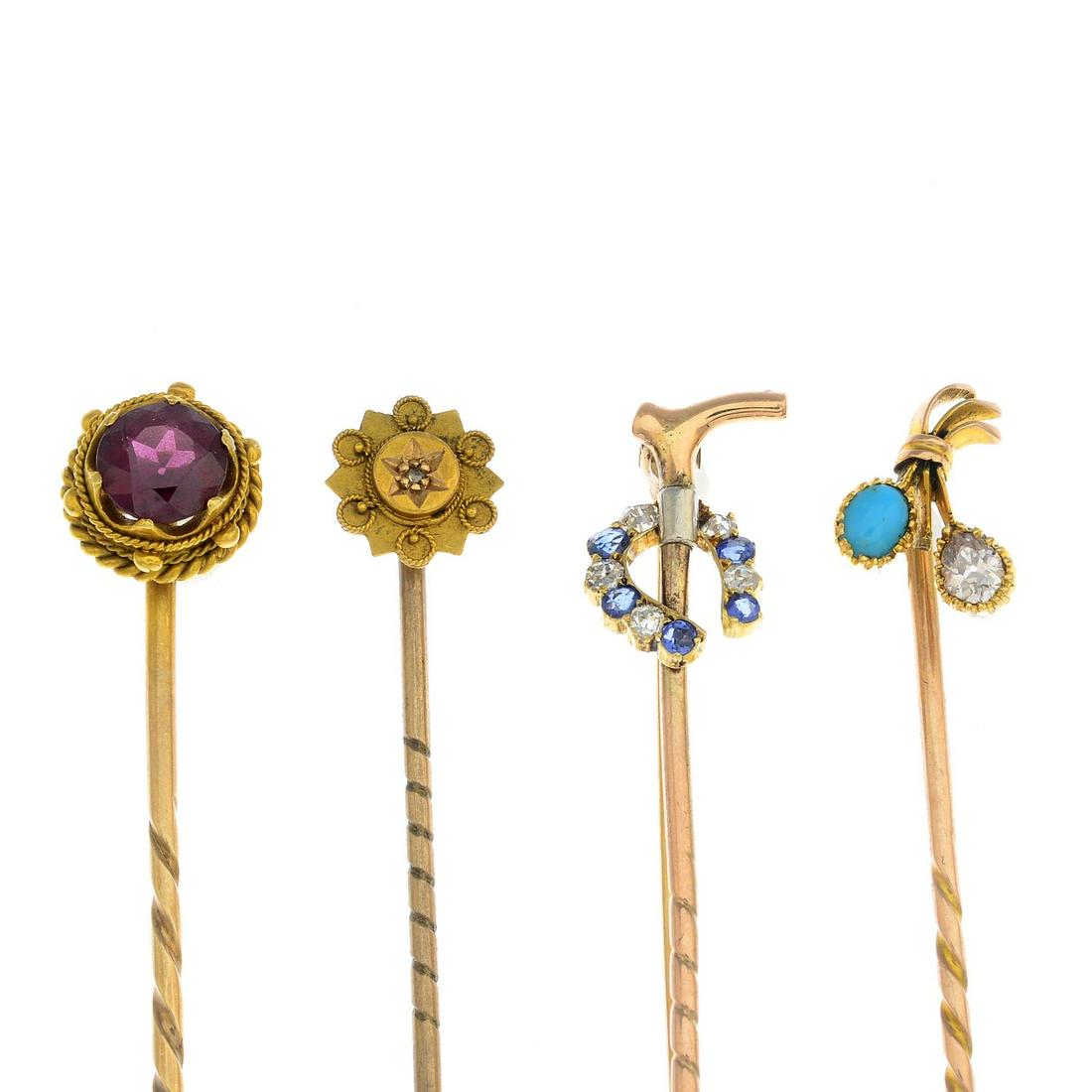 Eight mostly diamond and gem-set stickpins and a