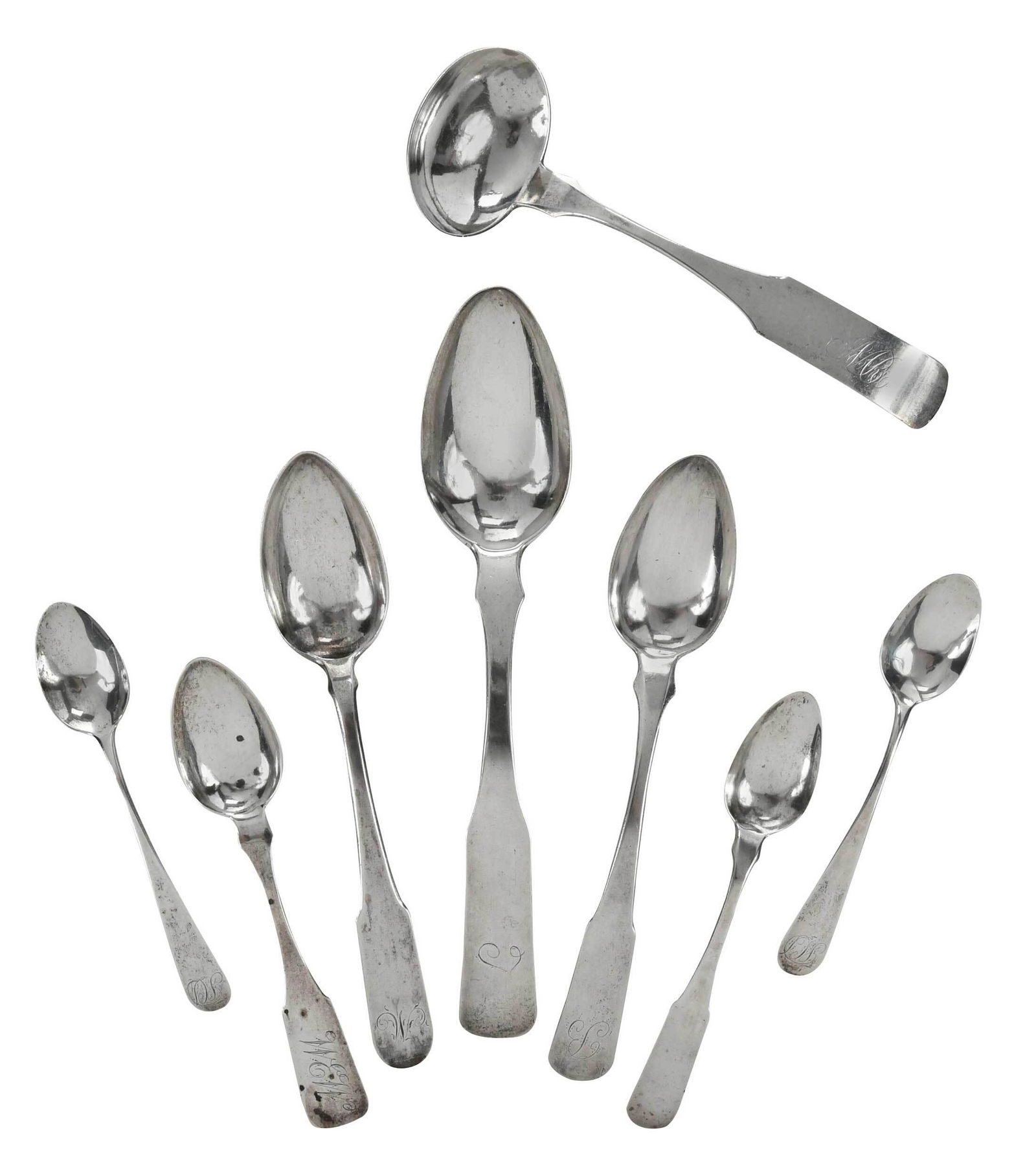 Eight Pieces Alexandria Coins Silver Flatware