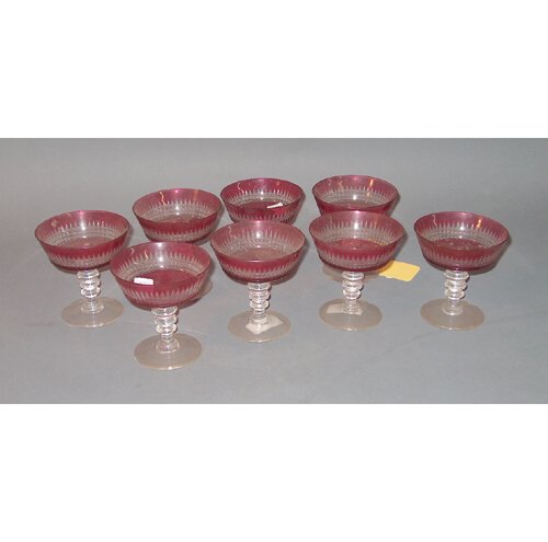 EIGHT RUBY CHAMPAGNES 20th c. With cut-to-clear ba