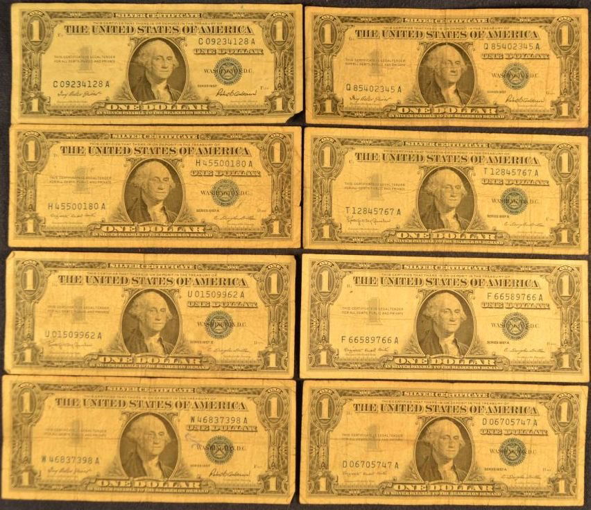 Lot of 10 Uncirculated 1935E $1 Silver Certificates - 5 Matched Pairs1 day LeftLot of (6) American Silver CertificatesMar 15, 2026US 1957 $1 Silver Certificates, Paper, Friedberg 1619Lot of 3 - 1957 $1 Notes - Silver CertificatesLot of 8 - 1957/1957-B $1 Notes - Silver CertificatesLot of 2 - 1957-A $1 Notes - Silver CertificatesUS $5 $10 Silver Certificate Notes 1934 & 1953 LOTMar 11, 2026Lot of 2 - 1953-A $5 Notes - Silver CertificatesUS 1957-1957B $1 Silver Certificates, Blue SealSet of 10 Uncirculated 1957-B $1 Silver Certificates Consecutive Serial Numbers2 days LeftUS 1935-1957 $1 Silver Certificates, Paper, Fr. 1608, 1614, 1620US 1957 $1 Silver Certificates, Pick-1619US 1935-1957 $1 Silver Certificates, Paper, A Collection of BanknotesVINTAGE U.S. CURRENCY,SILVER CERTIFICATES3 days LeftUS 1957 and 1957 A $1 Silver Certificates4- 1957 Silver Certificates w/ 2 Different Runs of sequential serial numbers, UNC695 Lots Away