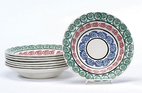 EIGHT SPONGE-DECORATED WHITEWARE SOUP PLAT