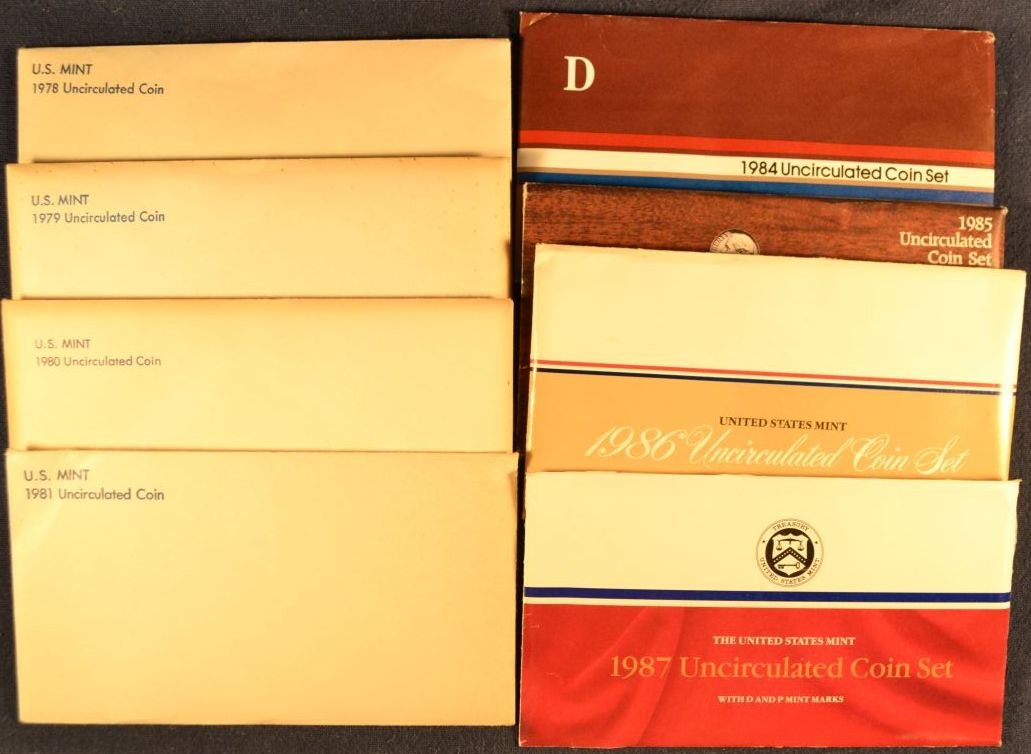 Eight US uncirculated coin sets: 1978 - 1981, 1984 -