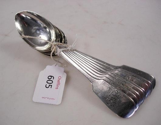 EIGHT VICTORIAN FIDLLE PATTERN TEASPOONS, EXETER