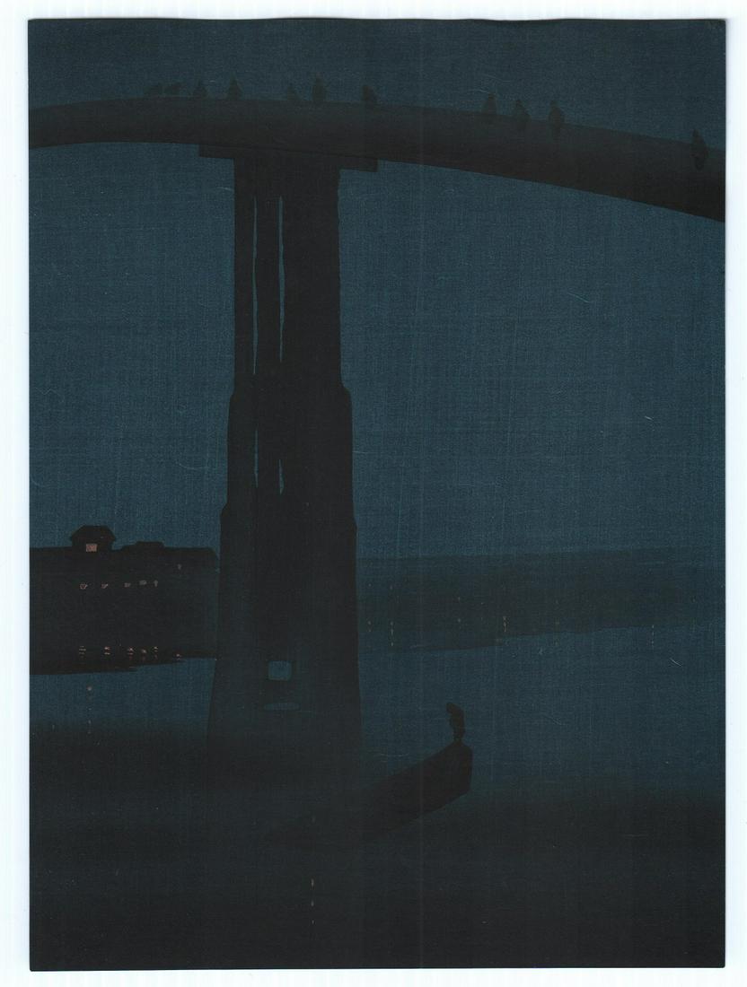 Eijiro Woodblock: Misty Bridge, Impressionism c1930s