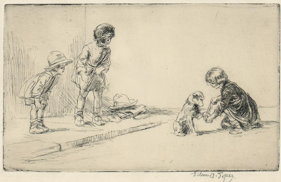 Eileen Alice Soper Signed Etching [Children, Dog]