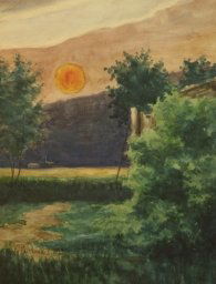 Watercolor painting Pink sunset in the field Valery Savenets