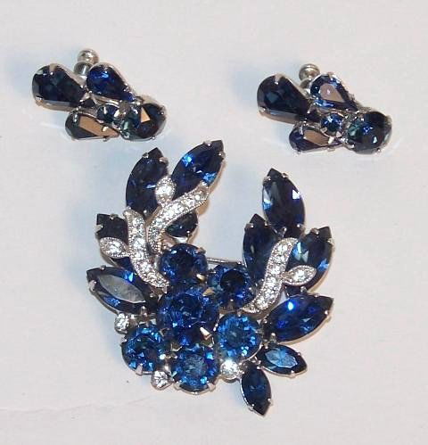 Vintage B David Light Blue and Clear Rhinestone Silver Tone Brooch Pin and Screw Back Earrings SetGolden Age Jewelry Auctions4.5(57)$64 days Left