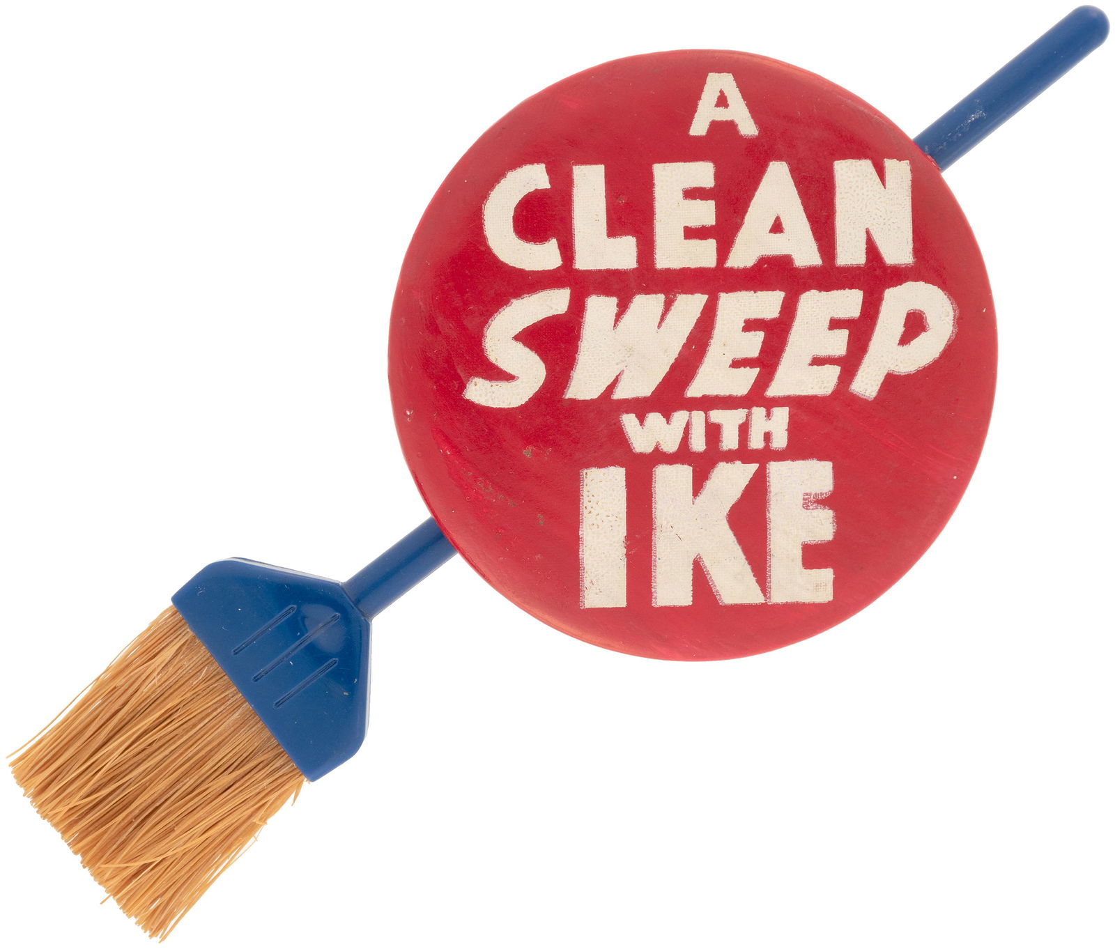 EISENHOWER "A CLEAN SWEEP FOR IKE" BUTTON WITH BROOM.