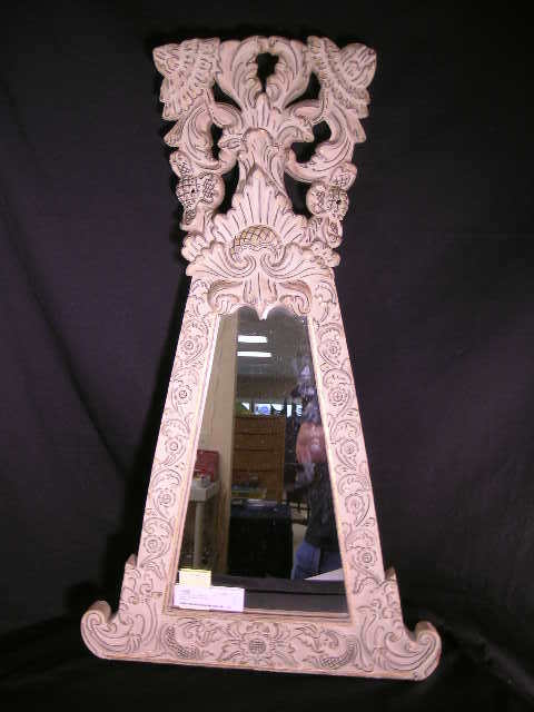 ELABORATELY CARVED WOOD TRIANGULAR WALL MIRROR