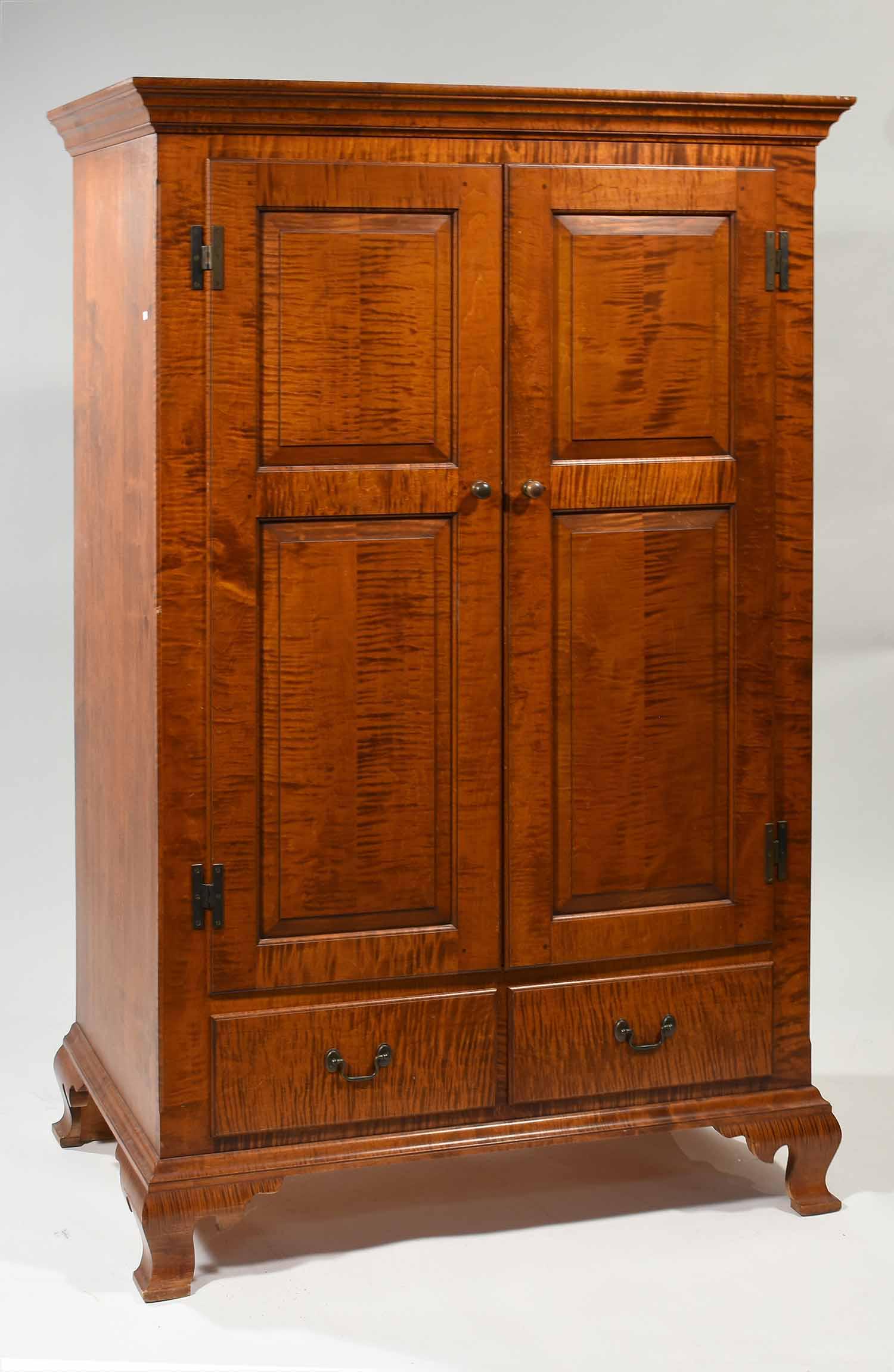 Antique Shanxi Province Elm Storage CabinetPossibly J.L. Treharn tiger maple cupboard base or sever, 6 drawers and 2 raised panel doors,Feb 24, 2026Stickley Brothers Style Antique Mission Tiger Oak Arts & Crafts Music Cabinet, Circa 19002 days LeftC.B. Hansen Rosewood ArmoireMar 05, 2026New England Chippendale Maple Bonnet Top Secretary2 days LeftEldred Wheeler (MA, 20th Century), Diminutive Chippendale Style Tiger Maple Cabinet4 days LeftContemporary Tiger Maple One Drawer Stand, Chippendale style with open bottom, single drawer withFeb 24, 2026ABC Home Chinese Dresser CabinetMar 03, 2026Timeless Vintage Burl Wood Armoire with Crown MoldingFeb 26, 2026Art Deco Style Burled Wood Armoire H 70.5" W 45" Depth 22.5"5 days Left4-Door Wardrobe in Walnut, 1700sChippendale Style Mahogany Armoire with Adjustable Shelf and Hanging Rod7 days LeftThomas Moser (American, 1935-2025) Dr. White Cabinet, 2006Feb 26, 2026Antique French Empire Cherry Wood TV Armoire Cabinet570 Lots AwayLarge Antique Federal Style Flame Mahogany Corner CupboardFeb 28, 2026Double door hanging walnut cupboard, dovetailed case, chamfered panel doors, brass hardware, 2 innerFeb 24, 2026